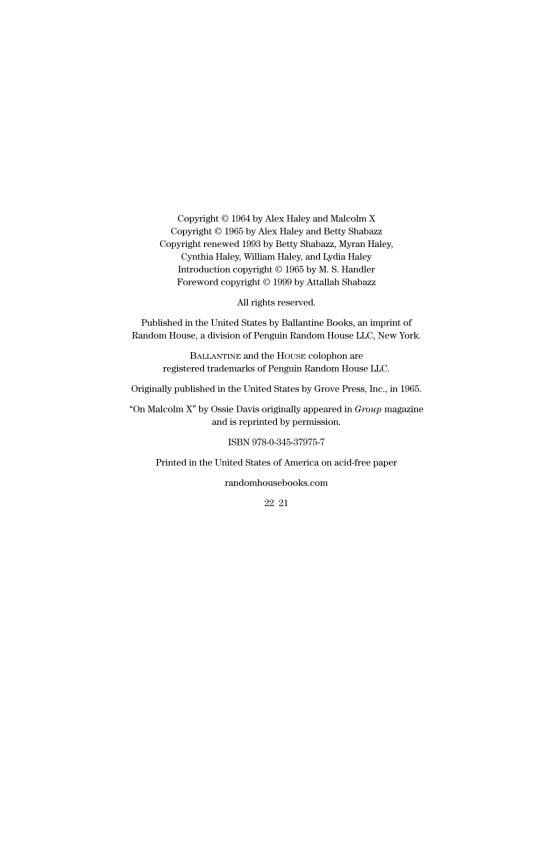 NEW YORK TIMES BESTSELLER • ONE OF TIME’S TEN MOST IMPORTANT NONFICTION BOOKS OF THE TWENTIETH CENTURY The “extraordinary” (The New York Times) autobiography of the legendary civil rights leader once called the most dangerous man in America—essential reading for anyone who wants to understand this nation’s historyIn the searing pages of this classic biography, Malcolm X, the Muslim leader, firebrand, and activist, tells the remarkable story of his life and the growth of the Black Muslim movement to veteran writer and journalist Alex Haley. Haley worked with Malcolm X for nearly two years; all the while, Malcolm did “not expect to live long enough to read this book in its finished form.” As clear-eyed about his own fate as he was about the plight of his community, Malcolm saw his truth-telling as a gift that would live beyond his own mortality.