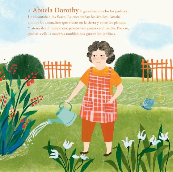 ¿Qué compartes con las personas a las que quieres?Abuela Dorothy compartió su amor por los jardines con su hija Hillary y con su nieta Chelsea. Les enseñó que los jardines son lugares mágicos de aprendizaje, asombrosos espacios para el descubrimiento, puntos de encuentro con la familia y bellas áreas donde compartir historias y celebrar acontecimientos especiales. Pero, sobre todo, les enseñó que en su jardín su amor crecía y florecía.