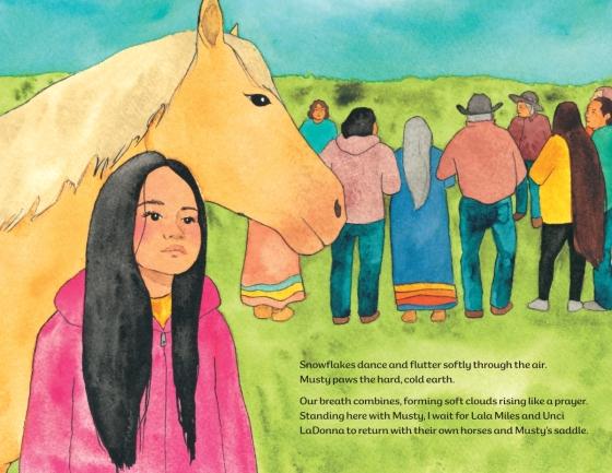 "McKnight (Shoshone-Bannock) captures the emotional depth of each page in her rich, realistic watercolor scenes, while Rose’s earnestly penned narrative is touching, capturing a precious day filled with uncertainty and fear as well as familial love and Indigenous pride . . . A beautiful blend of community action and the bond between an elder and grandchild." —