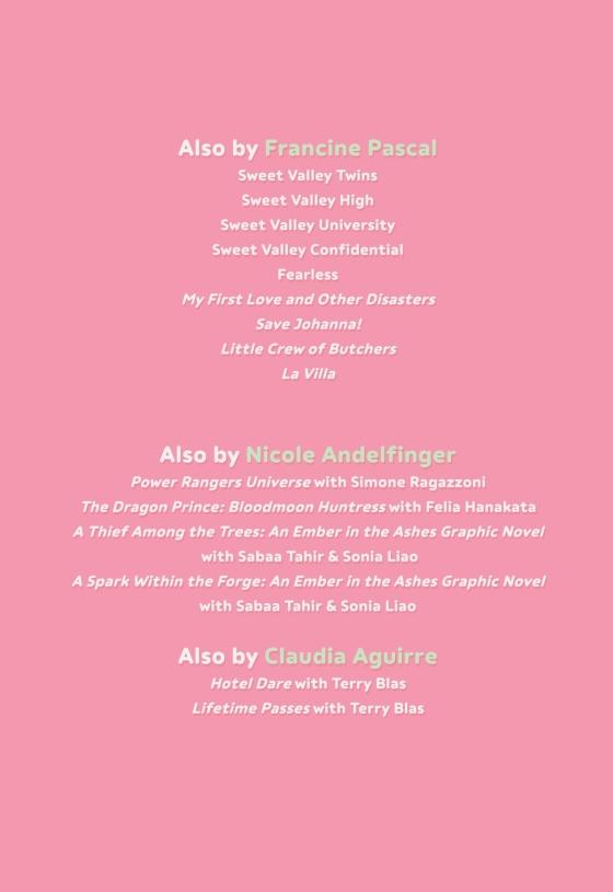 Francine Pascal is the creator of the Sweet Valley universe, which includes Sweet Valley Twins, Sweet Valley High, and Sweet Valley Unicorn Club. Over their lifetime, Sweet Valley books have sold millions of copies, been adapted into a TV series (in the eighties), and inspired board games, puzzles, and dolls. It is one of the most popular kids' book series of all time. Francine lives in New York and the South of France.