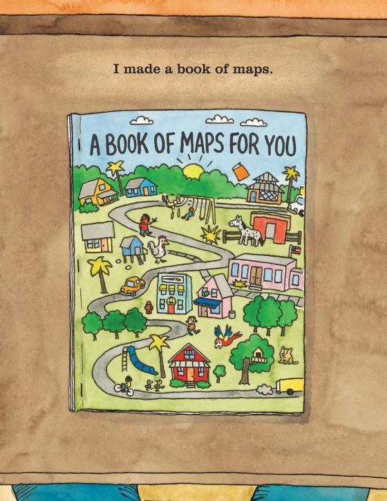 A Book of Maps for You, a young cartographer leaves a one-of-a-kind gift behind for the kid moving into his old house. He’s drawn and annotated maps of all the neighborhood places of interest—no playground, reading nook, or chicken coop left uncharted.