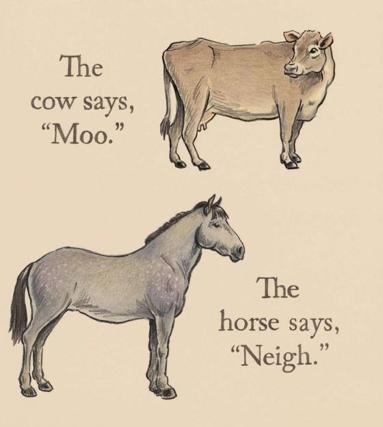 New Yorker cartoonist Matthew Diffee makes his children’s book debut with this laugh-out-loud twist on the classic animal sound book.The cow says “moo.” The horse says “neigh.” Everyone can agree on these.