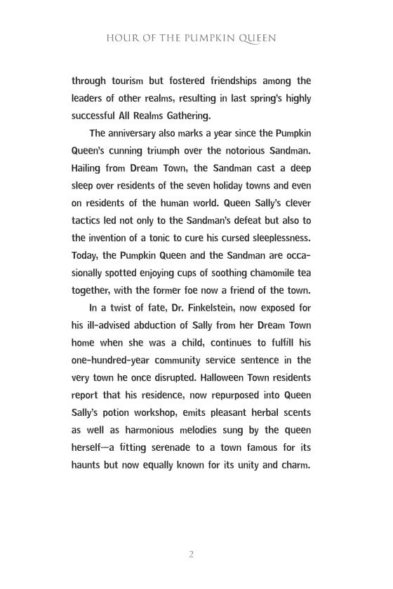 One year has passed since Sally wed her beloved Jack Skellington and stepped into her role as queen of Halloween Town. Even with her Jack at her side, though, being a ruler isn’t easy, and Sally feels uncertain of her future. Her seams are stretched thin with her royal duties, her newfound family in Dream Town, and a desire to bring citizens from across the Hinterlands together.