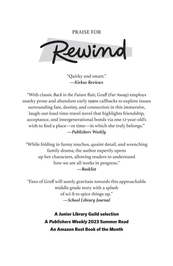 Far Away) employs snarky prose and abundant early 1990s callbacks to explore issues surrounding fate, destiny, and connection in this immersive, laugh-out-loud time-travel novel that highlights friendship, acceptance, and intergenerational bonds via one 12-year-old’s wish to find a place—or time—in which she truly belongs." —