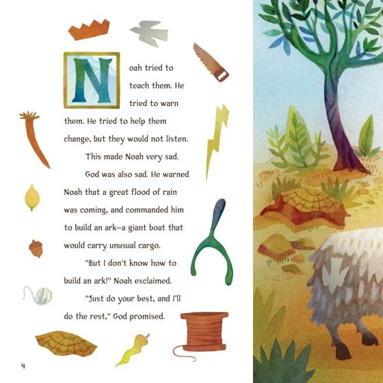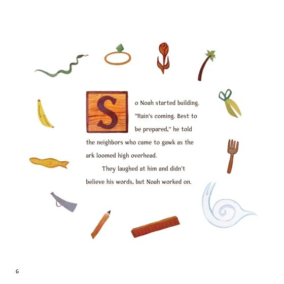 “A ‘Hidden Pictures’ game enhances this tale of Noah’s Ark. Even those unfamiliar with Highlights magazine or its find-the-hidden-objects pages will immediately glean the idea from the cover, which uses smooth, shiny embossing to highlight items hidden in plain sight. . .Surrounding each page’s text, which relates the biblical story in easy yet satisfying language, are the pictures of the items readers need to find. (With) a pleasing rhyming verse. . .God’s repeated refrain to Noah is sure to strike a chord with little listeners who similarly feel out of their depths: ‘Just do your best, and I’ll do the rest.’ Children are sure to pore over the pages.”