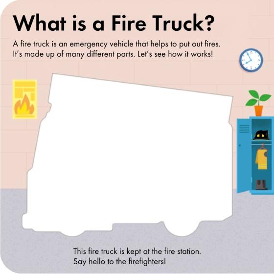 The perfect first book about fire trucks for toddlers ages 2-5Layered die-cut pages encourage interactivityFun facts about fire trucks!