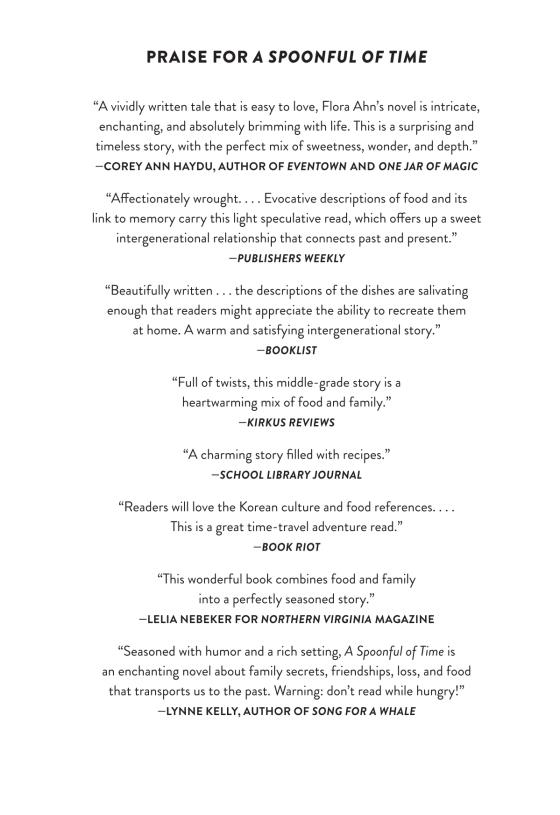 When You Reach Me meets Love Sugar Magic in this unforgettable middle grade novel where time travel, family recipes, and family secrets collide.Maya’s grandmother, Halmunee, may be losing her memory, but she hasn’t lost her magic touch in the kitchen. Whether she serves salty miyeok-guk or sweet songpyeon, her stories about Korea come to life for Maya.