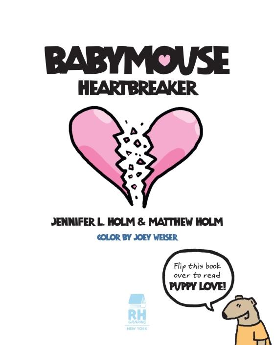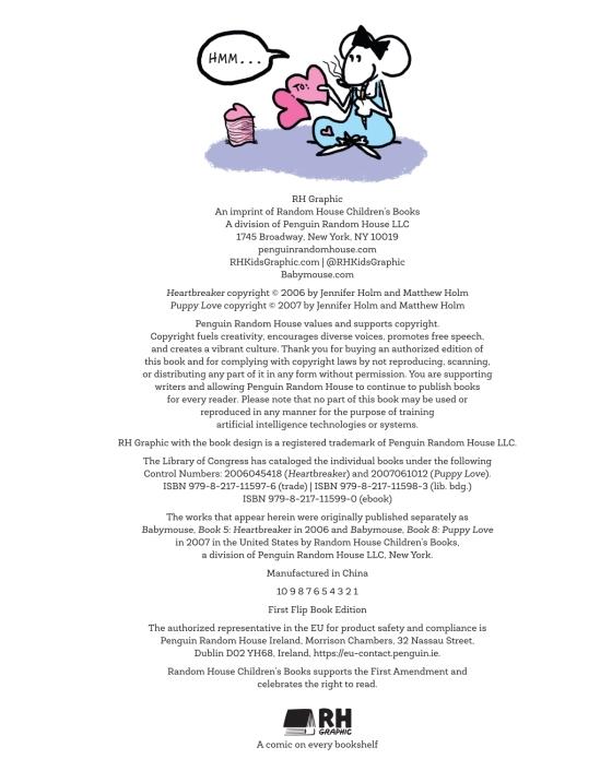 2 COMICS IN 1! FOR THE FIRST TIME IN FULL-COLOR! Flip out with Babymouse -- a spunky elementary schooler with boundless imagination -- in this OVERSIZED edition for young readers that includes the two LOVE-ly adventures: HEARTBREAKER and PUPPY LOVE! On one side, does Babymouse need a Valentine for the school dance? Then flip the book over to find Babymouse's newest love…a puppy.