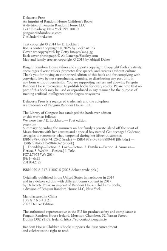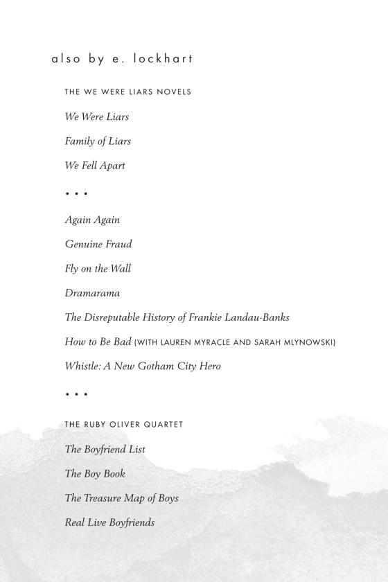 DON'T MISS THE ORIGINAL STREAMING SERIES WE WERE LIARS—AND LOOK FOR E. LOCKHART’S NEW NOVEL IN THE WE WERE LIARS UNIVERSE, WE FELL APART, OUT NOW!